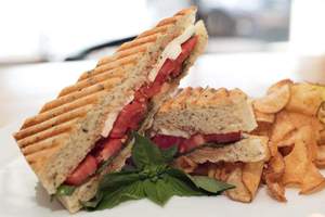 We make our signature focaccia daily, and grill it to perfection on our state-of-the-art presses. Served with a side of our homemade red bliss chips.