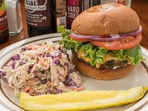 6 oz. grass-fed beef from Hickory Nut Gap Farm, house-marinated & cooked medium-well. Served on a local bun from Annies Bakery with choice of side & pickle