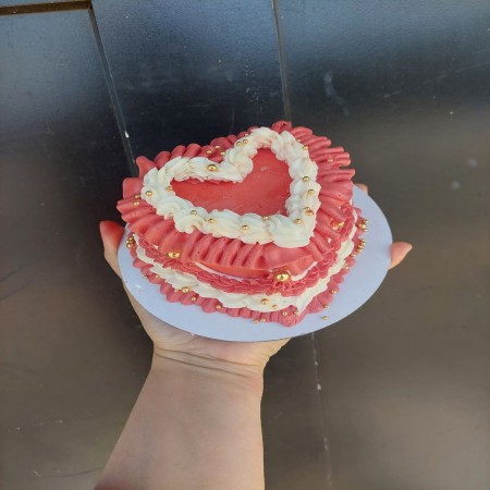 Adorable heart-shaped mini cakes in red velvet or vanilla!